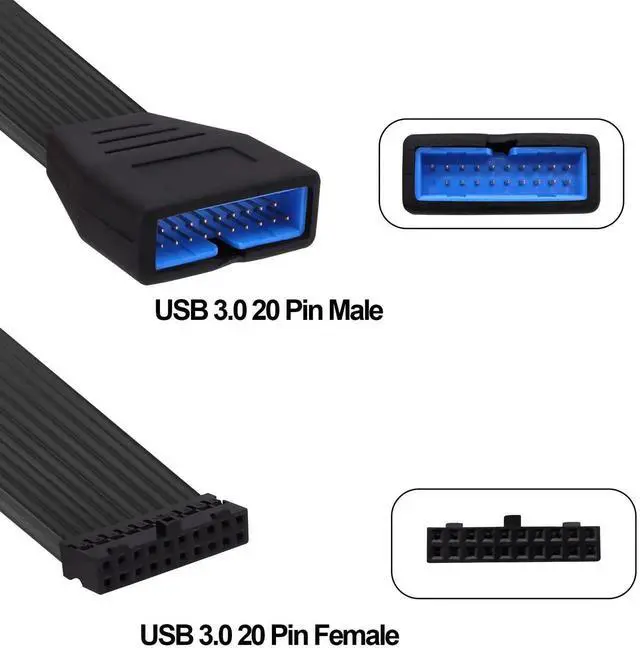 • Compact USB 3.0 motherboard 19/20 pin male to female cable is very convenient to carry around and easier to deal with dust and avoid overheating,black flat strip wire is more durable and reliable than a single crimped wire, provides you stable signal and data transmission