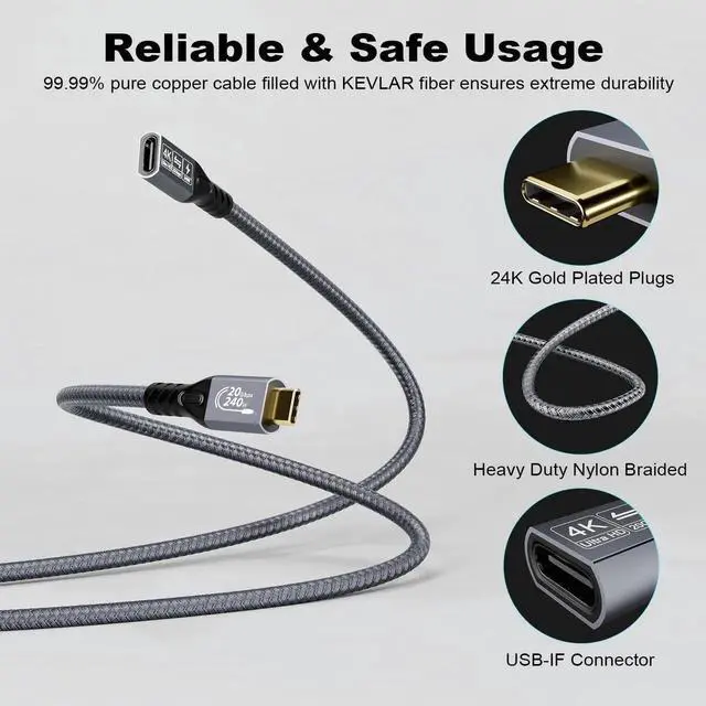 - [24K gold-plated connector with nylon braided ]This braided C-C type USB 3.2 Extra Durability with nylon braided cable, which provides a smoother touch and extra durability.connector is 24K gold-plated, high-quality aluminum alloy case on both connectors with strain relief ensures its reliable performance and longer bend durability. Plug into all your USB Type-C compatible devices without worrying about the orientation of the port. USB C Male to the USB C male extension cable. female solves the problem of the male to male cable too short of some of your devices.Connection and transmission without barrier and without distance.