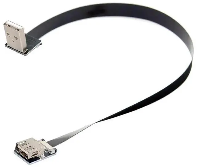 Down Angled USB 2.0 Type-A Male to Female Extension Data Flat Slim FPC Cable for FPV & Disk & Scanner & Printer