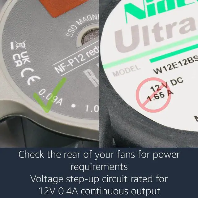 Integrated Voltage Booster: Built-in 12V step-up circuit boosts standard USB 5V output to 12V (0.4A max), making it compatible with PWM controllers and fan hubs for versatile use.
