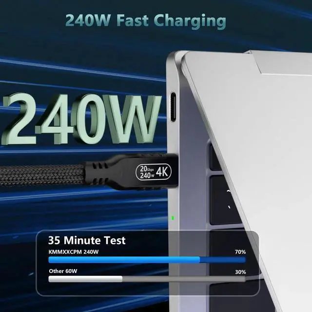 • [Unmatched 240W Charging Power] This USB C to USB C cable is a powerhouse, boasting a remarkable 240W output. It utilizes advanced PD3.1 and QC3.0 fast charging technologies. Whether it's a high-end gaming laptop that demands a hefty power supply or your everyday mobile devices, this cable can handle it all. It charges your devices at an unprecedented speed, saving you valuable time and ensuring you're always ready to go.