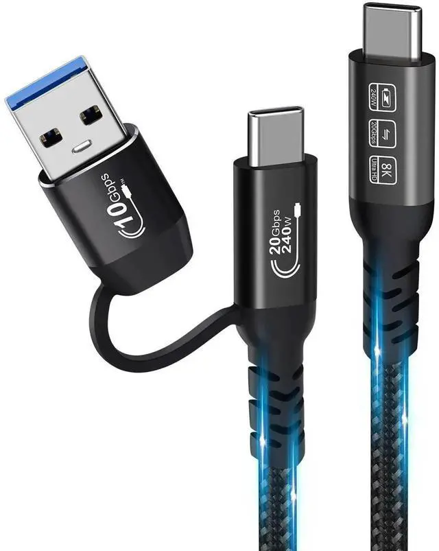 USB C Cable,USbC 3.2 Gen 2X2 20Gbps,Multi functional 2in1 USB A to Type C 8K@60Hz UHD Video 5A/240W PD3.1 Fast Charge Cord Compatible with Thunderbolt 3/4 MacBook Pro Samsung