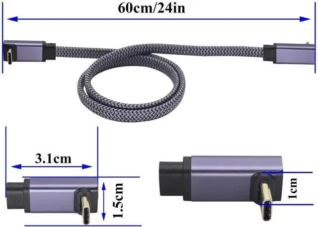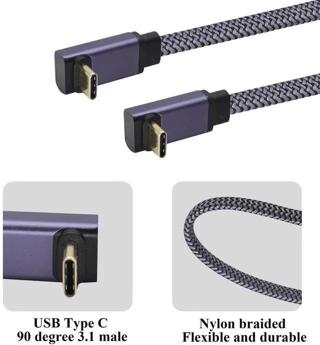 Up&Down 90-degree braided bending design USB C 3.1 to USB C 3.1 flat nylon cable: with L shape design, prevent the bending and breaking. Better to management cable in some situations, especially in tight spaces like cars,corners,etc.