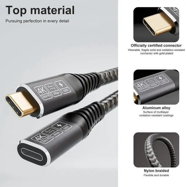 Additional Features- 4K 60HZ HD DISPLAY: With this USB C extension cable you can connect the USB C device to a USB -C television or screen. It is an ideal solution to share pictures or films with friends colleague and family on large screens. Support the video resolution up to 4k@60Hz / 2k@120Hz to bring you a home cinema feeling. Note: Please make sure that the output display from Port supports the functions of the video input output