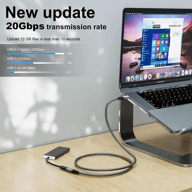 Supports High-Speed Charging Pair up with a compatible charger to power up your device at up to 100W. Transfer Files in Seconds With a 20 Gbps data transfer rate, you won't have to waste time waiting for a file to transfer slowly. Move movies, music, and large files between devices at high speed. USB C extension support up to 3840*2160 4K@60Hz video display for the connection between your Mac Book to another monitor or display with USB Type-C interface, giving you the smoothest visual experience(note:please make sure the Type C ports on both your laptop and monitor support video in and out function)