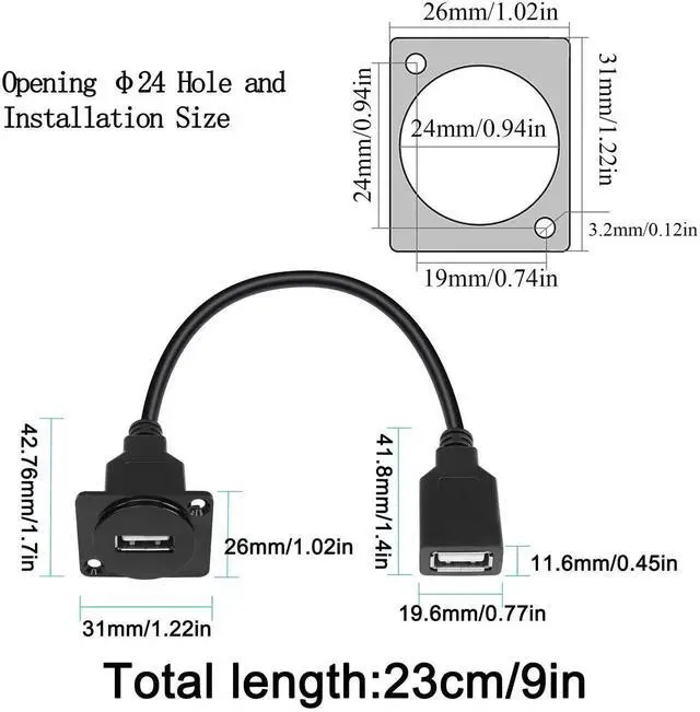 Package: 1*USB2.0 female to female panel mount short cable connector, 2*M3 screw