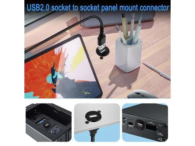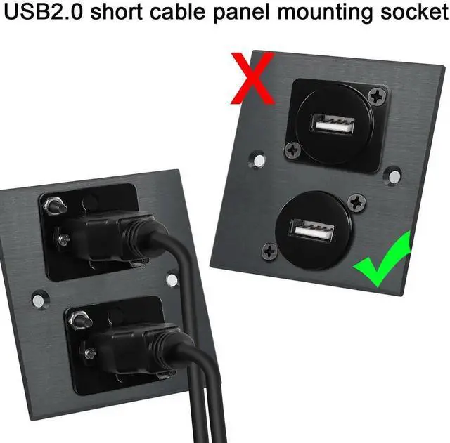 USB2.0 female to female panel mount adapter with short cable, easily realize USB2.0 system input or output configuration, provide stable data transmission and charging environment. Designed based on standard XLR panel/D-type panel mounting dimensions, suitable for installation in equipment cabinets, equipment boards, walls, desktops, and floor plugs. Provides easily accessible USB2.0 ports to extend it to where you want it. Widely used for data transfer and charging connection for computers, consumer electronics, home, office, automation, medical, smart home and other devices.
