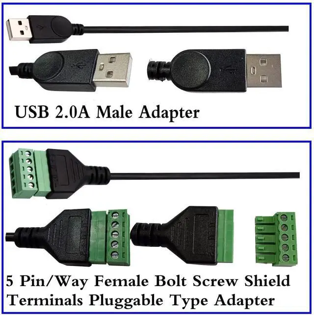 FeaturesDIY USB 2.0 A Male to 5 pin (way) Bolt Screw Terminal Pluggable Type Block Connector Cable (USB to screw teminals
