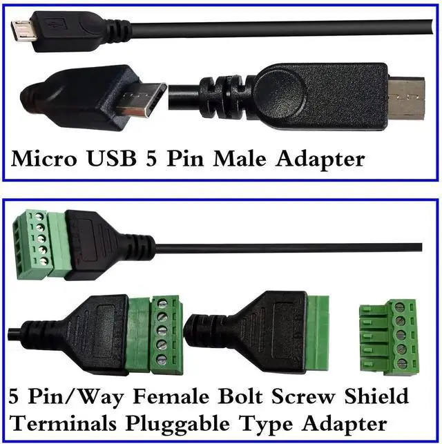 FeaturesDIY Micro USB 2.0 Male to 5 pin (way) Bolt Screw Terminal Pluggable Type Block Connector Cable (Micro USB 2.0 to screw teminals