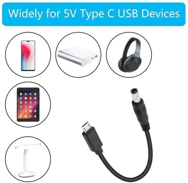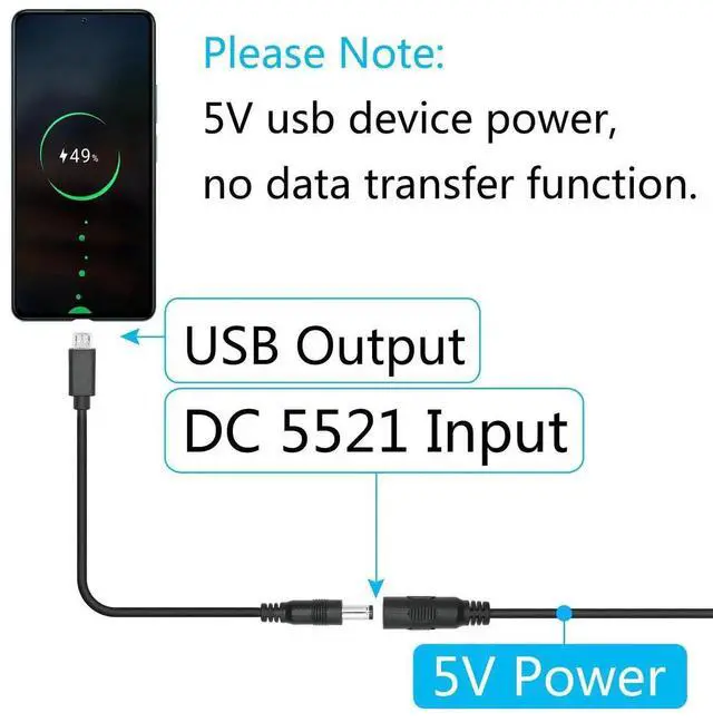 DC 5.5mm x 2.1mm to micro usb power cord, easy to use