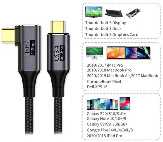 This USB4 Type-C Cable is widely compatible with Most of USB-C Devices (Mainly Laptops), Such as Mac Pro 2020,2019,2018,XPS, Chrome Book