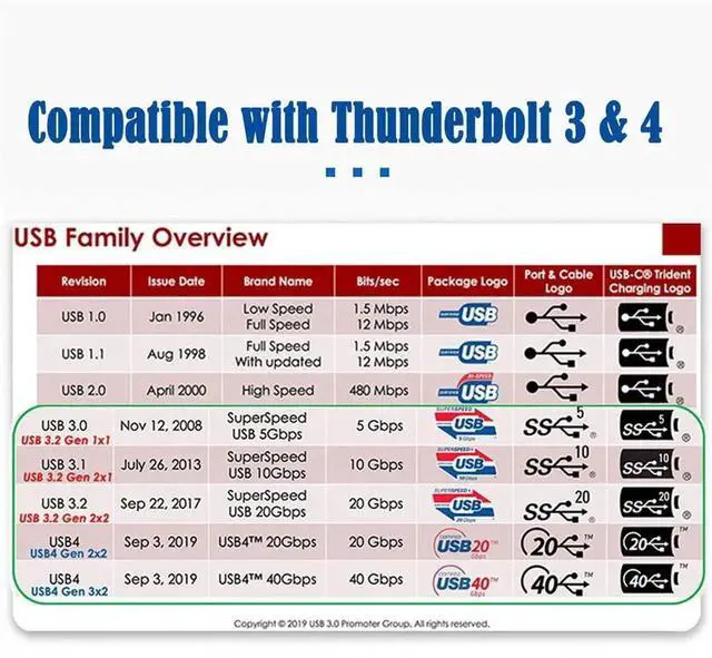 2) USB4.0 Max 40Gbps Data Transfer Rate: