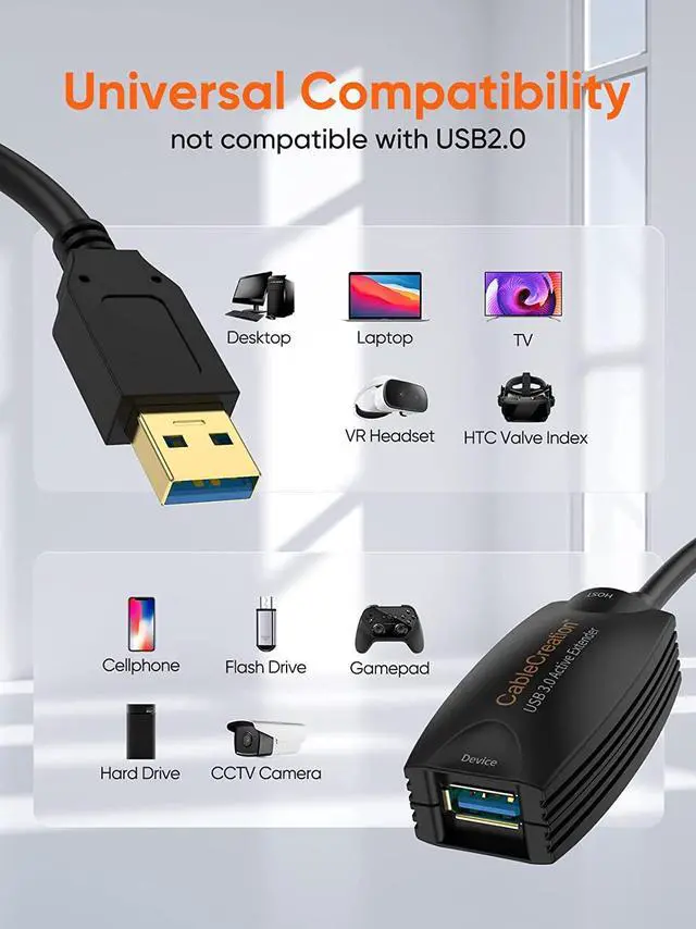 Broad Compatibility VR Devices: Compatible with Oculus Quest 2 Accessories, Rift Sensor ( Not work with Oculus Rift S), Steam, Playstation VR, HTC Vive, Valve Index VR. USB Extender is also excellent for CCTV camera, hard drive, mouse, gamepad, Xbox, Printer and most popular USB devices. Plug and play, no driver required
