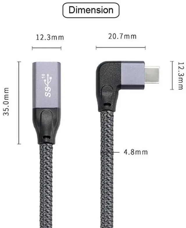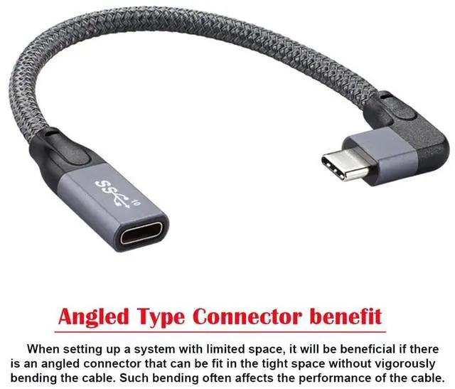 90 Degree Right Angled USB-C USB 3.1 Type C Male to Female Extension Data Cable for Macbook Tablet