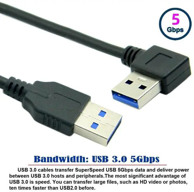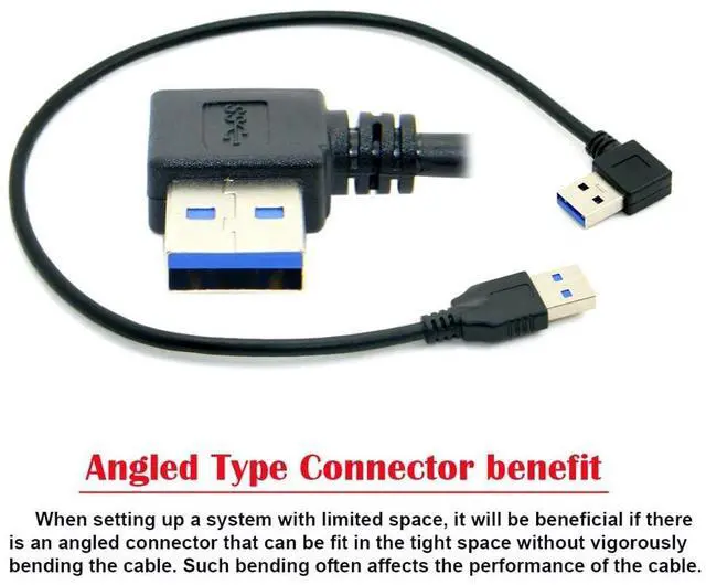 90 Degree Right Angled USB 3.0 A Type Male to Straight A Type Male Data Cable