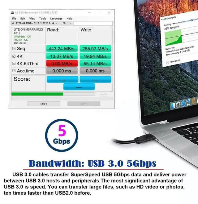 Offers a throughput of up to 4.8Gbps when used with a USB 3.0 host and device,an astounding 10x the capability of USB 2.0 (480Mbps).