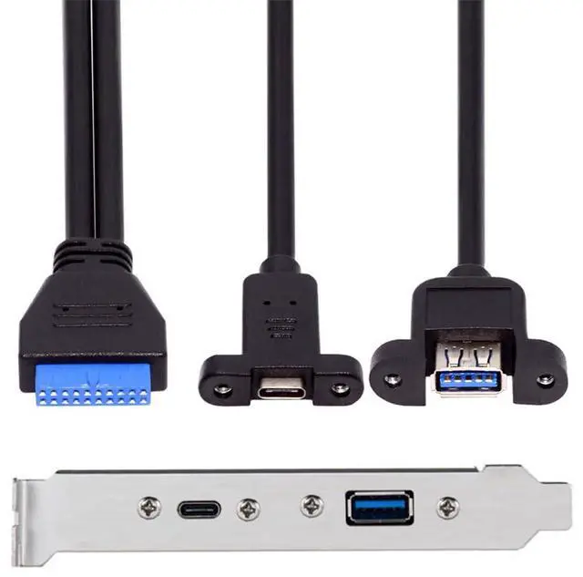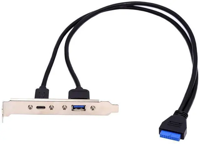 USB3.0 Motherboard 19/20Pin to USB-C Type-C & USB 3.0 Dual Ports Female PCI-E Back Panel 5Gbps Cable