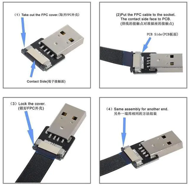 USB 2.0 Type-A Male to Female Extension Data Flat Slim FPC Cable for FPV & Disk & Scanner & Printer
