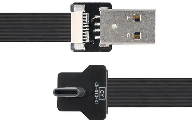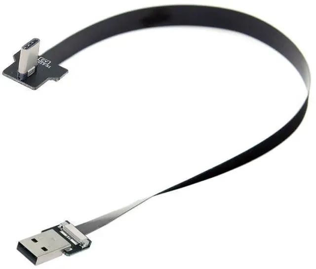 Vszerda 1.0M Right Angled USB 2.0 Type-A Male to USB-C Type-C Male Data Flat Slim FPC Cable for FPV & Disk & Phone