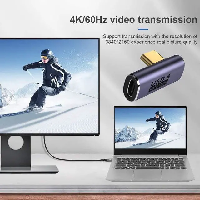 40Gbps USB4 Type C Male to Female Low Profile Right Angled 100W Power Data 8K Video Adapter
