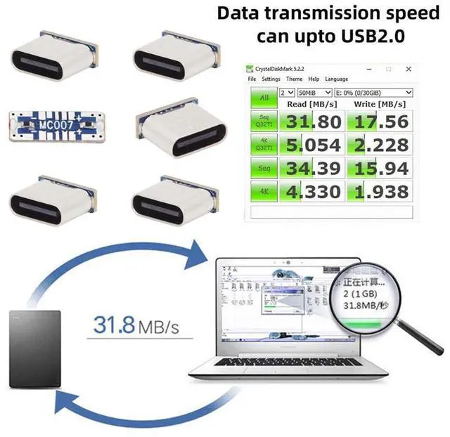 Compliant with USB Base Specification 2.0, Output USB Type-C interface. Compliant with USB 2.0 Hi-Speed (480Mbps), USB 1.1 Low-Speed (1.5Mbps).