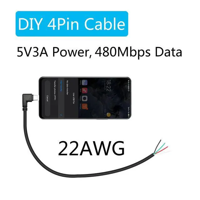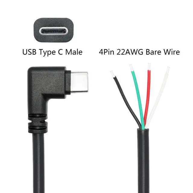 2Pcs Right Angle USB C to 4 Pin Bare Wire