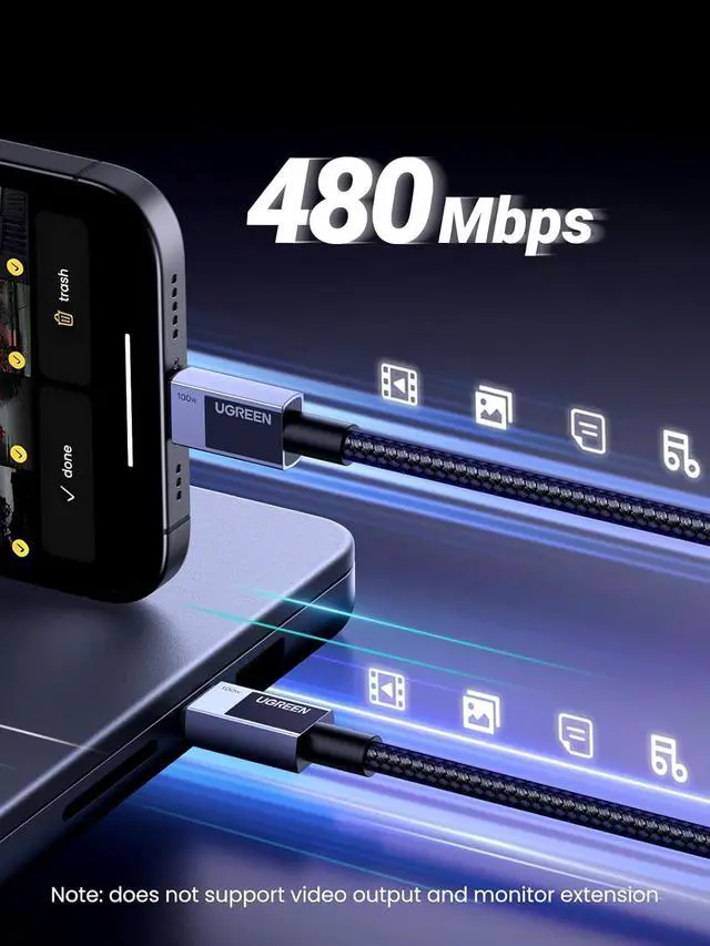 FAST CHARGING: Equipped with PD 3.0, UGREEN USB C cable can achieve 100W fast charging, which can charge an iPhone 15 from 0% to 60% in 30 minutes and a MacBook Pro from 0% to 42% in 30 minutes