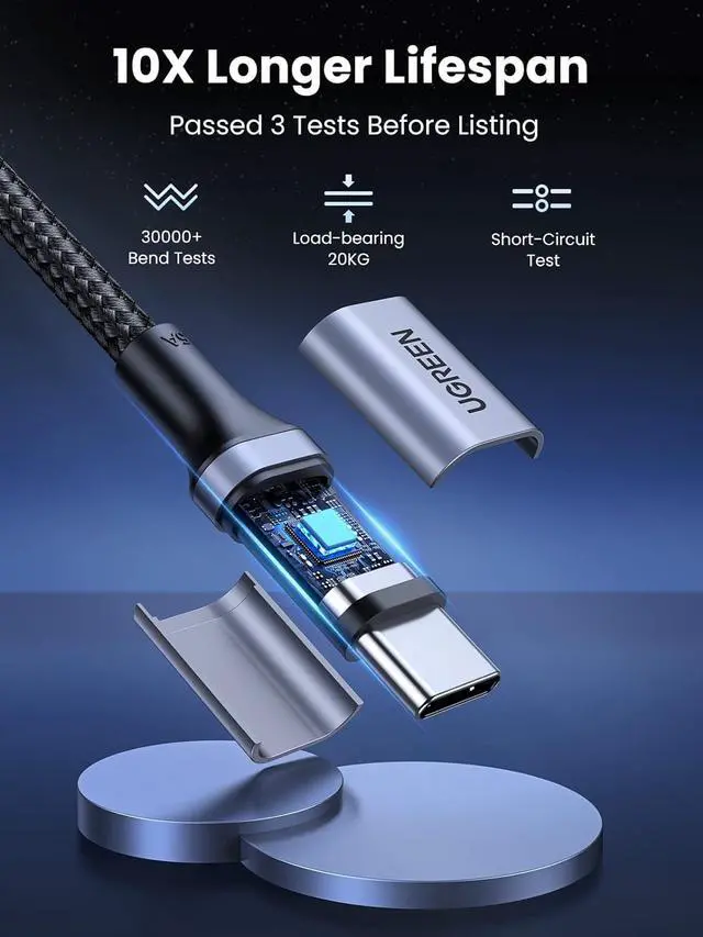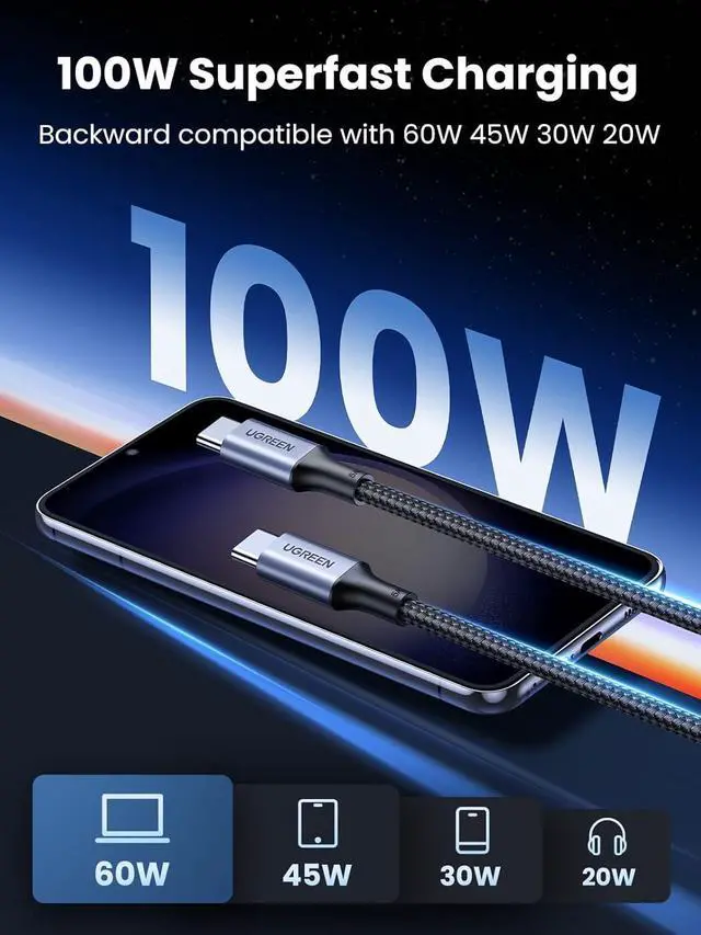 Fast Charging: The UGREEN USB C cable supports 100W fast charging with PD 3.0 and QC 3.0 technology to quickly charge iPhone 15 to 60% in just 30 minutes. Backwards compatible with 65W/45W/30W/20W chargers