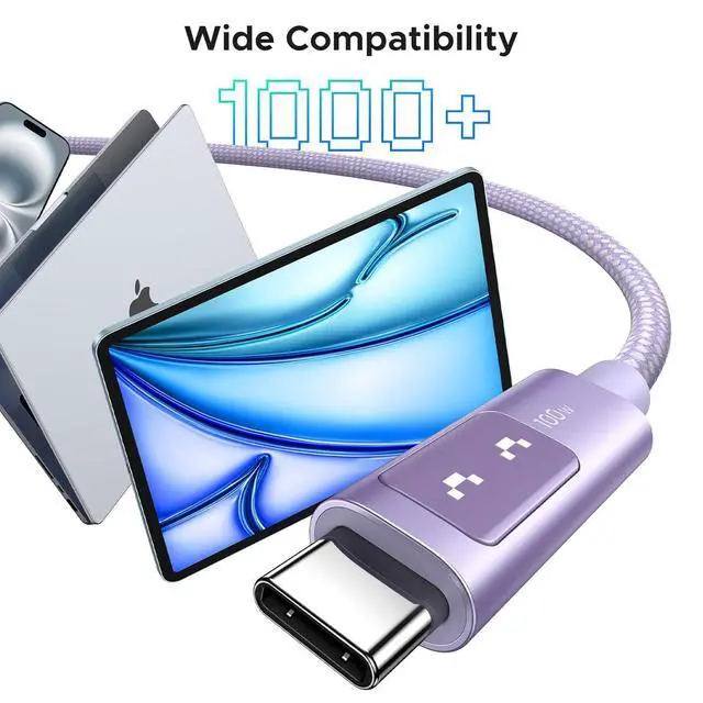 UGREEN Uno USB C to USB C Cable 100W Fast Charging Cable Type C Charging Cord with LED Display for iPhone 17/17 Plus/17 Pro/17 Pro Max/16, MacBook Pro/Air, iPad Pro/Air, Galaxy S25 Ultra 3.3FT Purple