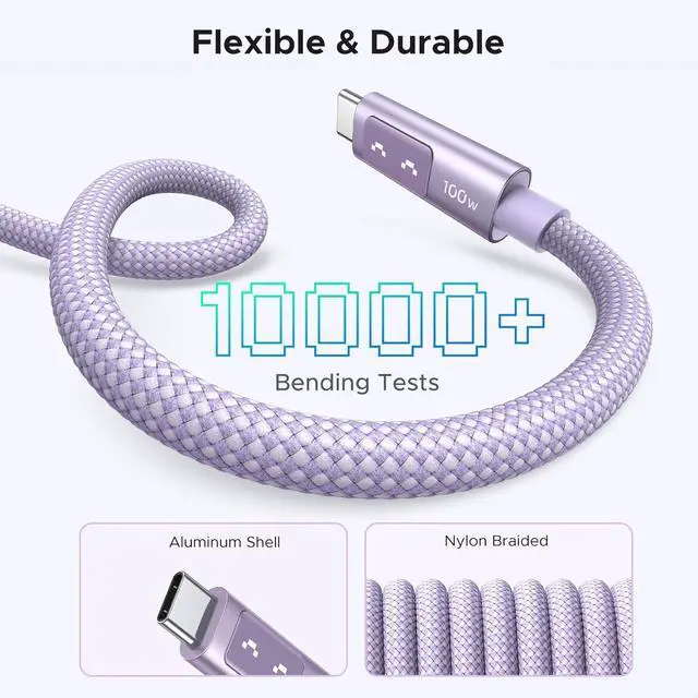USB C Fast Charging: This USB C cord supports PD100W. When work with a compatible USB C power adapter, it elevates your charging speed to a whole new level