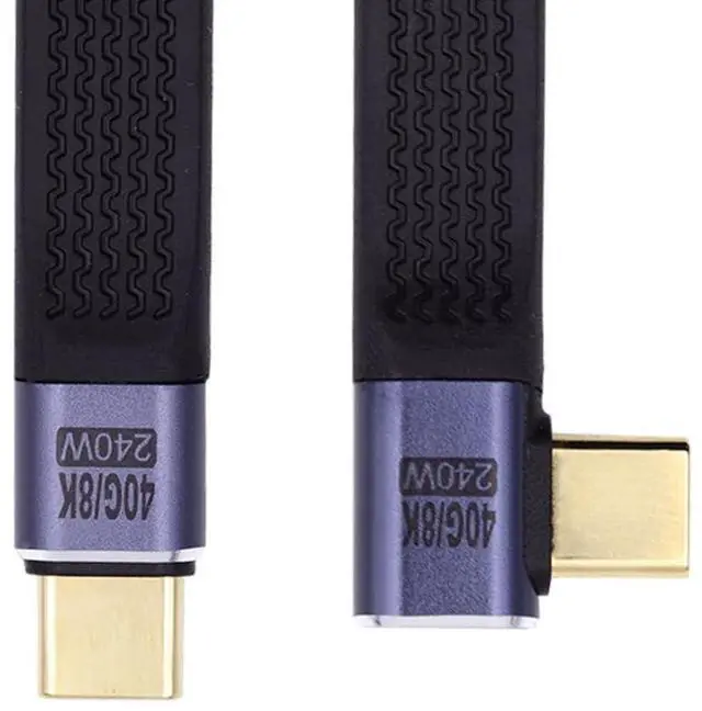 Vszerda USB C USB4 40Gbps 240W 100W 8K Flat Slim FPC Data Cable Right Angled for Laptop Phone 13cm