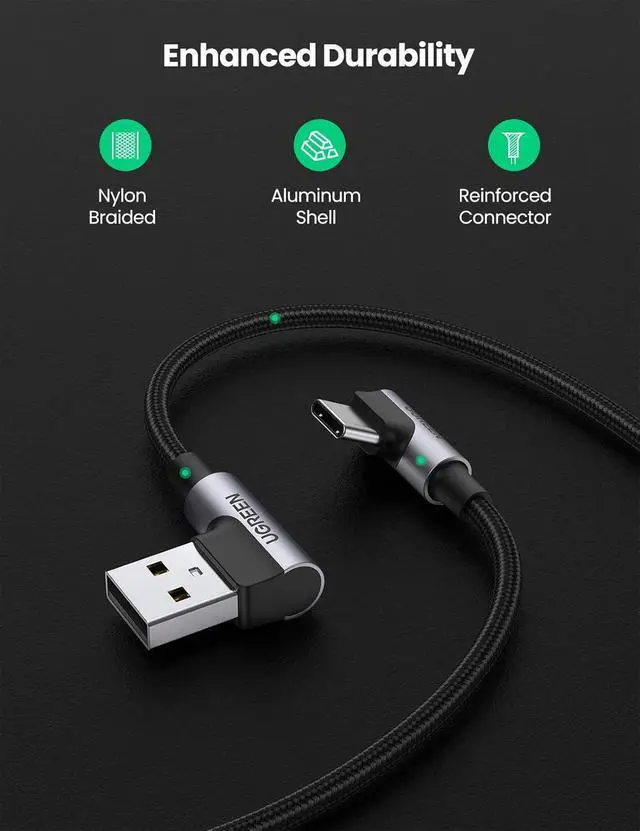 UGREEN USB to USB C Cable 90 Degree USB C Fast Charging Cord Compatible with iPhone 16/16 Plus/16 Pro/16 Pro Max/15/SAM-SUNG Galaxy S10/S10+/Pixel 7/6a/LG G8/G7/Pixel/Switch, etc, 1.6FT