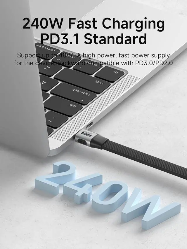 240W Fast Charging: Built-in E-marker chip, PD 3.1 standard supports 240W fast charging, while it is backward compatible with PD3.0 and 2.0 protocols,Supports high power output of up to 48V5A. And also compatible with 140/100/60W power devices. Charge USB C devices from phones to laptops