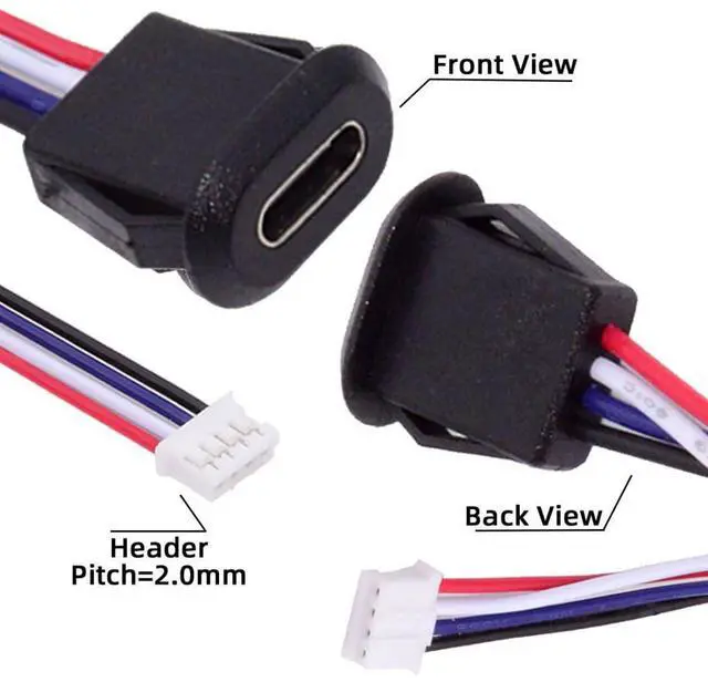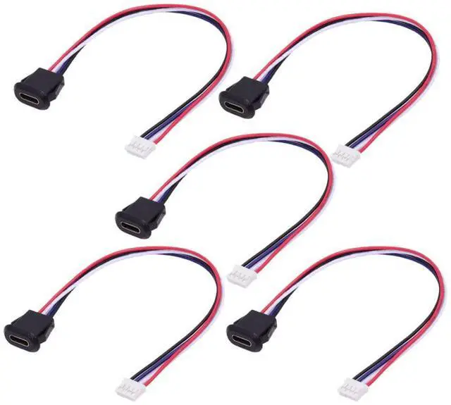 Vszerda 5 Pack 2.0mm Pitch 4Pin to USB C Female DC 5V 3A Flush Mount Charging Socket Port Conversion Cable Adapter
