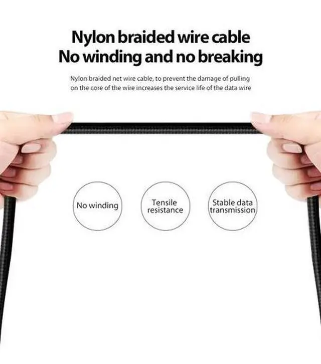 - Tangle-Resistant Nylon Braid: The outer braided layer provides excellent flexibility and protection against fraying and physical damage.