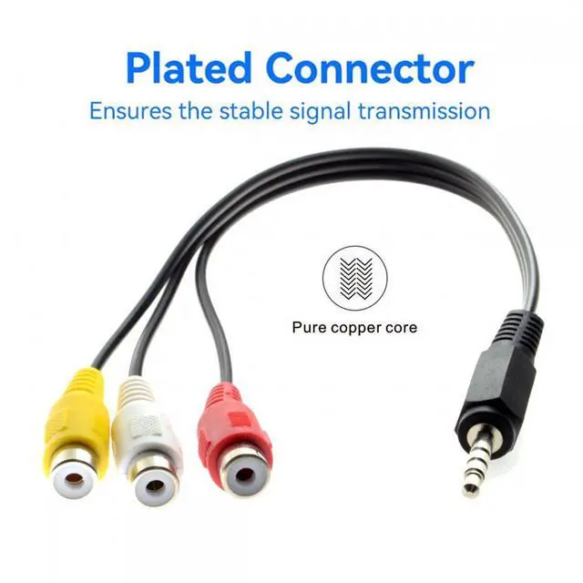 3.5mm 1/8" Male Stereo Car AUX to 3 RCA AV Female Cord Audio Video Cable 20cm