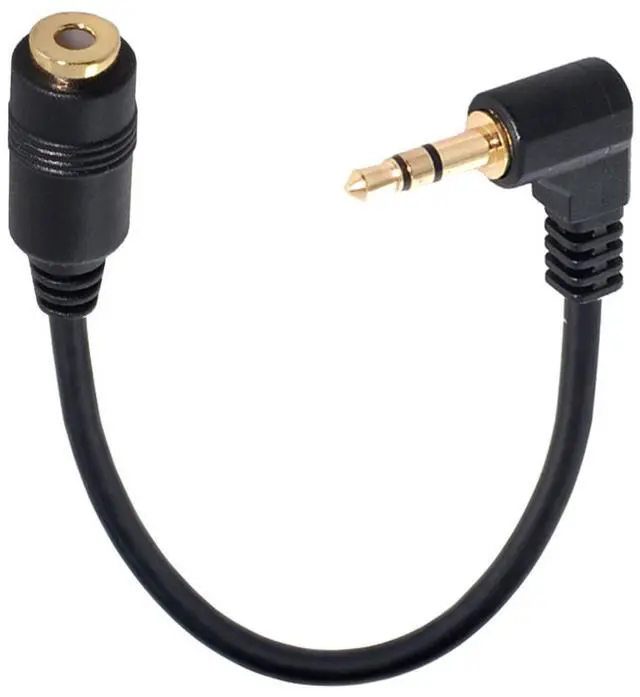 90 Degree Right Angled 3.5mm 3 Poles Audio Stereo Male to Female Extension Cable 10cm Black