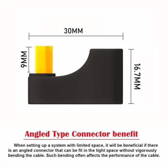 The angled type Allowing you to connect it to a female port, even if space around the port is limited.