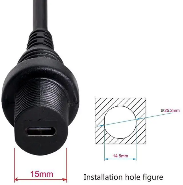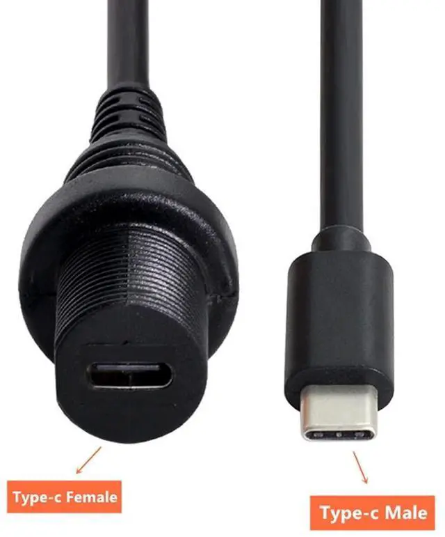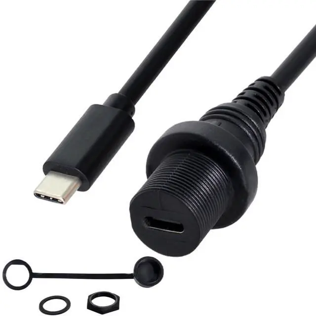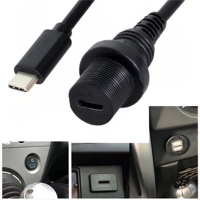 USB 3.1 Gen 2 10Gbps Flush Mount USB C Male to Female Extension Cable for Car Dashboard Panel Mount Waterproof Dustproof Round