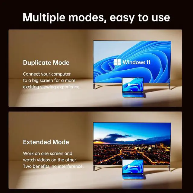 Full HD 1080P Resolution: Supports high-definition video up to 1920×1080 @60Hz, delivering sharp images and vibrant colors for office presentations or video playback