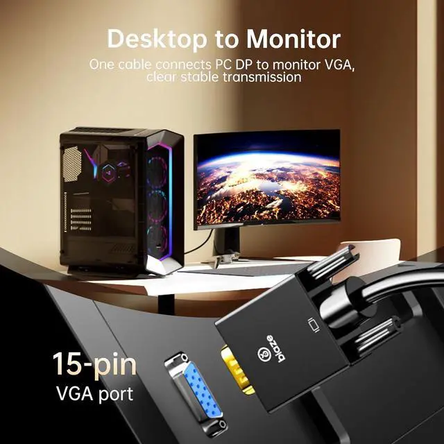 Active DP to VGA Conversion: Built-in chip ensures smooth signal conversion from DisplayPort to VGA\u2014perfect for connecting DP laptops or desktops to VGA monitors, TVs, or projectors