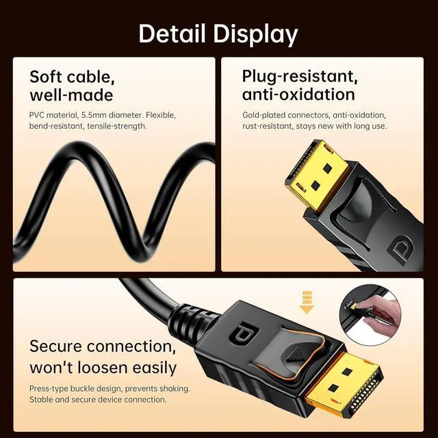 Durable and Reliable Build: Gold-plated connectors, PVC jacket, and strain-relief molding ensure long-lasting signal integrity and withstand daily use