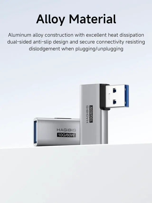 Alloy material: Aluminum alloy construction with excellent heat dissipation, dual-sided anti-slip design, and secure connectivity resisting dislodgement when plugging/unplugging. Compact and durable, can be plugged and unplugged up to 10,000 times without the need for any driver installation, offering true plug-and-play convenience
