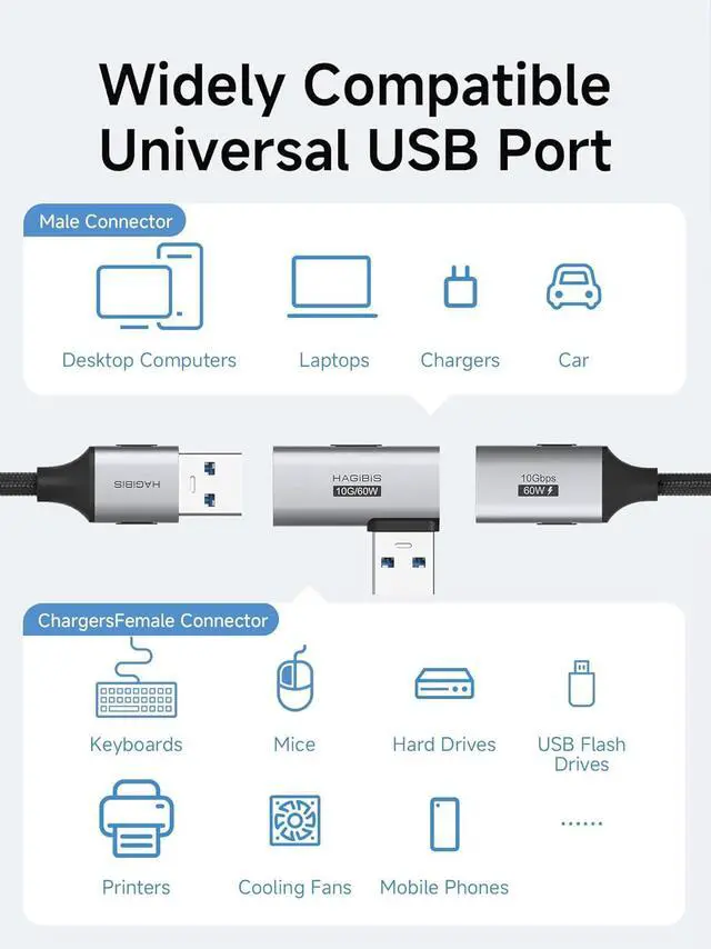 High-Speed Data Transfer: USB-A male to female adapter supports USB 3.2 transmission with backward compatibility to USB 2.0, achieving a top data transfer speed of 10Gbps for quick transfers of high-definition videos, music, images, and other files