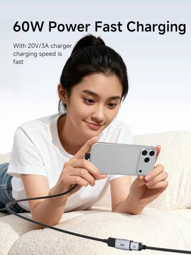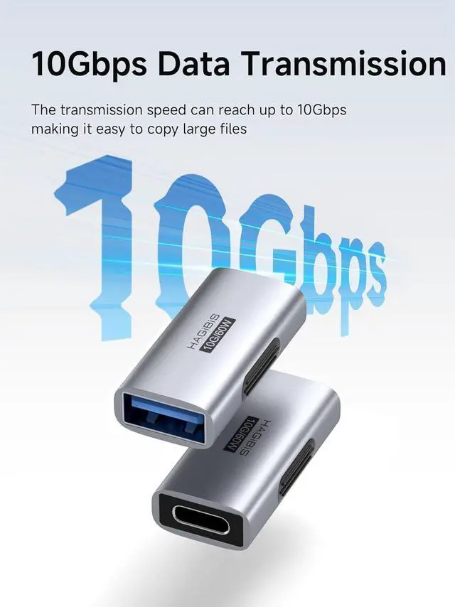 60W Fast Charging: USB 3.2 female and female adapter supports simultaneous charging and data transfer. Support 10Gbps data transfer and max 20V/3A fast charging, the device enables faster charging performance