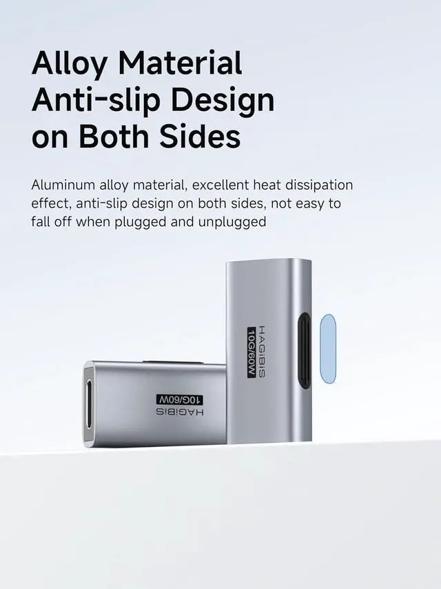 Alloy material: Aluminum alloy construction with excellent heat dissipation, dual-sided anti-slip design, and secure connectivity resisting dislodgement when plugging/unplugging. Compact and durable, can be plugged and unplugged up to 20,000 times without the need for any driver installation, offering true plug-and-play convenience