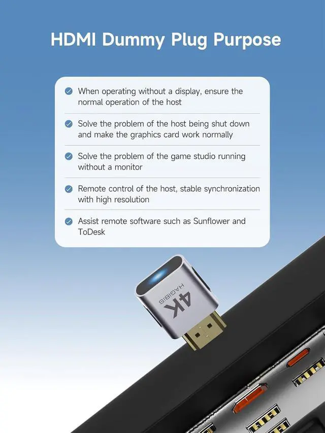4K HDMI Dummy Plug EDID Emulator Plug Headless Ghost Display Adapter Virtual Display Emulator 4K@60Hz 2K@60Hz 1080P@120Hz for PC VR Headsets Monitor (AH10)