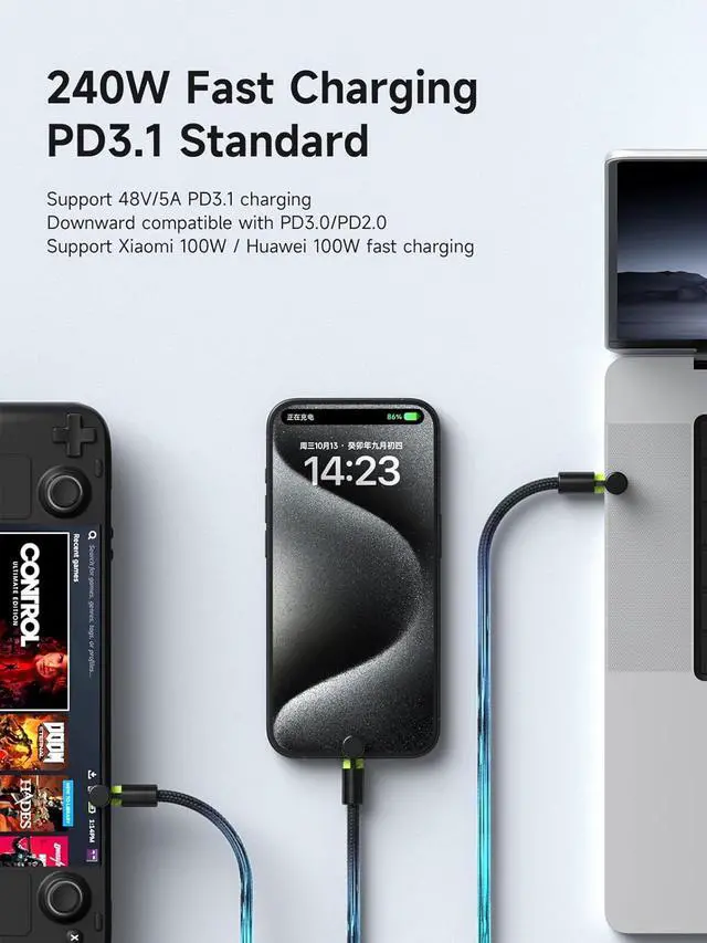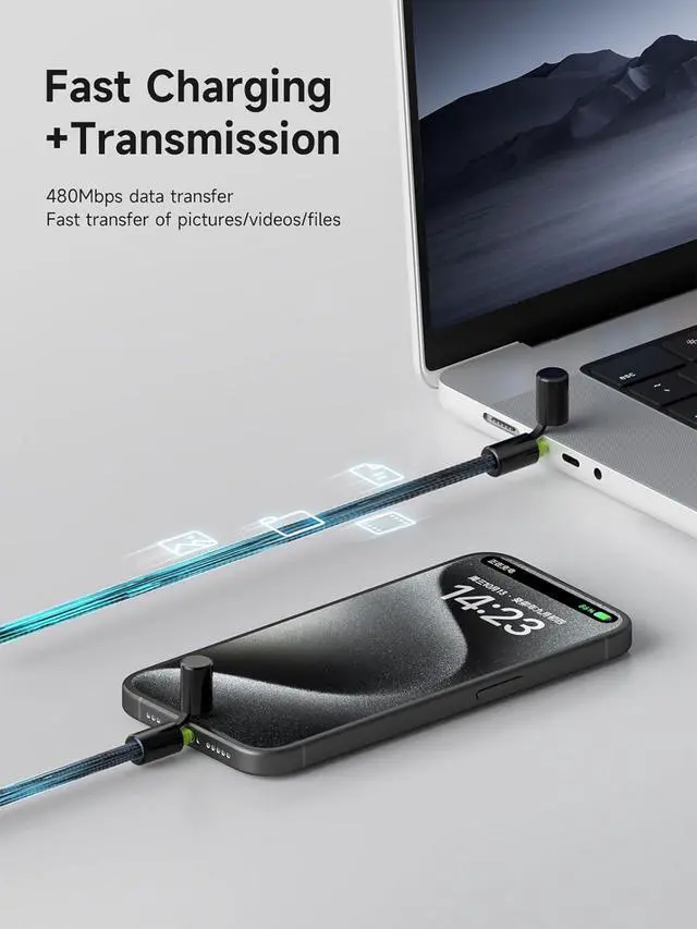 USB C Cable with Magnetic Protective Cap, 240W Fast Charging Cable with 480Mbps Data Transfer, Type C PD 3.1 Fast Charger, for Fit iPhone 15 16 17 Pro Max, iPad, MacBook Pro Air (Black Green, 0.8ft)