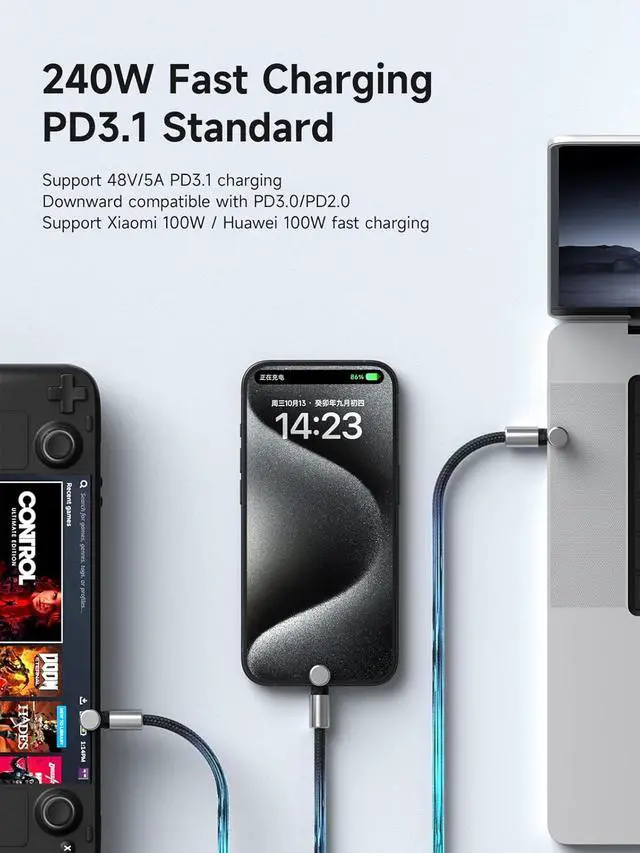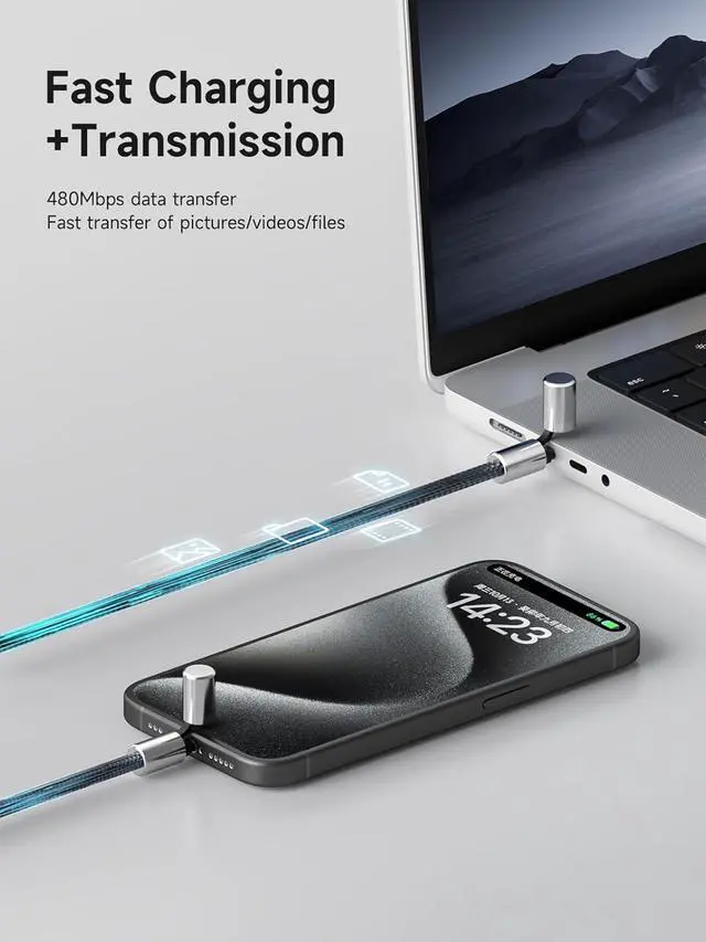 USB C Cable with Magnetic Protective Cap, 240W Fast Charging Cable with 480Mbps Data Transfer, Type C PD 3.1 Fast Charger, for Fit iPhone 15 16 17 Pro Max, iPad, MacBook Pro Air (Silver, 6.6ft)