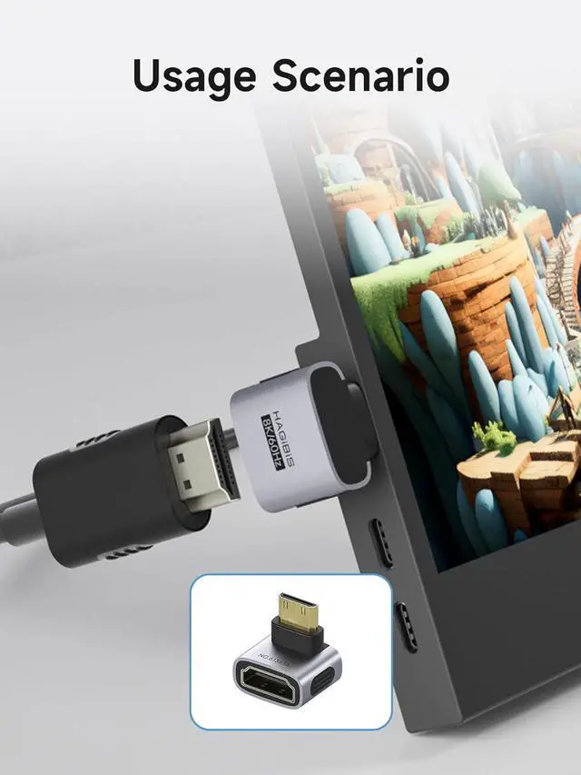 Mini HDMI to HDMI Adapter: 8K@60Hz up to 7680 × 4320 pixels, Mini HDMI Male to HDMI Female Adapter (2 Pack), Standard Mini HDMI 2.1 Version. *Note: Please Check the Port Direction Before Purchasing